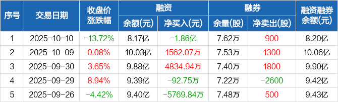 上能电气融资融券信息显示,2025年10月10日融资净偿还1.86亿元;融资余额8.17亿元,较前一日下降18.53%。