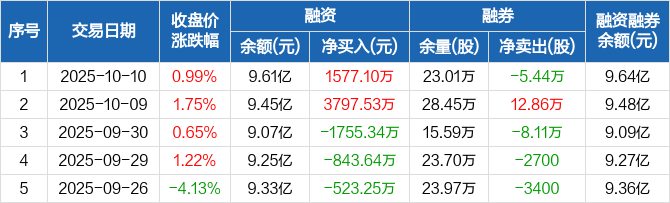 东方国信:融资净买入1577.1万元,融资余额9.61亿元(10-10)