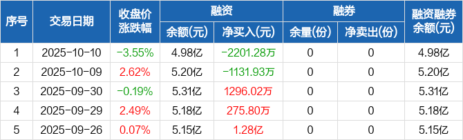 半导体设备ETF:融资净偿还2201.28万元,融资余额4.98亿元(10-10)