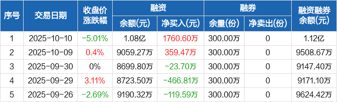 创业50ETF:融资净买入1760.6万元,融资余额1.08亿元(10-10)