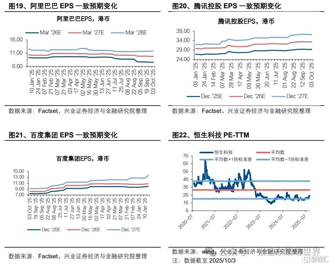 随着中国AI投资加速和AI应用的推进,AI相关Capex有望成为下一轮盈利增长的发动机,恒生科技指数成分股的盈利预期和估值都有提升空间。1)港股互联网受“外卖大战”影响而导致盈利预期出现了明显下调,后续应该聚焦AI的贡献。2)当前恒生科技指数市盈率水平仍显著低于历史中枢,后续有望重回科技成长高估值叙事。截至2025年10月3日,恒生科技指数PE-TTM 25.1倍,处于2020年7月以来的39.2%水平。