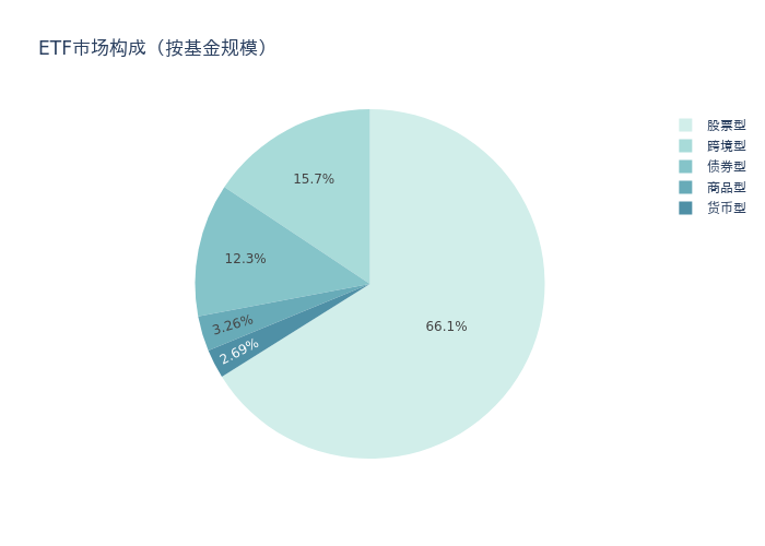 基金规模方面,上周ETF市场总规模达到56131.53亿元,较前一周减少122.21亿元。其中,股票型ETF为37089.09亿元,债券型ETF为6916.76亿元,货币型ETF为1511.21亿元,商品型ETF为1829.73亿元,跨境型ETF为8784.74亿元。