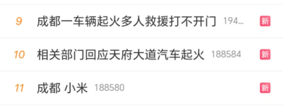 某社交平台关于成都天府大道汽车起火热搜话题