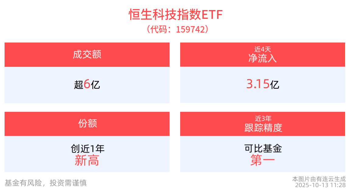 份额方面,恒生科技指数ETF最新份额达53.94亿份,创近1年新高。