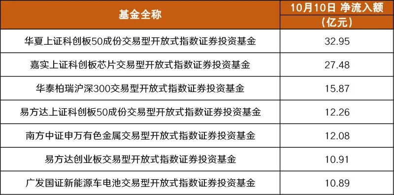 从资金具体流向看,多只宽基ETF吸引资金涌入。其中,华夏上证科创板50成份ETF净申购额为32.95亿元,华泰柏瑞沪深300ETF净申购额为15.87亿元,易方达上证科创板50成份ETF、易方达创业板ETF等净申购额均超过10亿元。