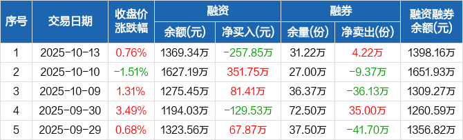 高端装备ETF:融资净偿还257.85万元,融资余额1369.34万元(10-13)