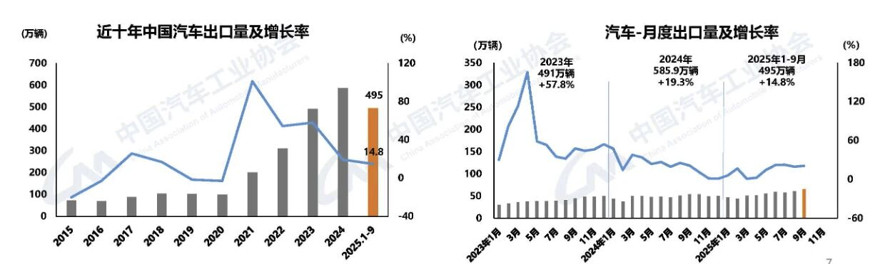 10月14日,中国汽车工业协会数据显示,9月,汽车出口65.2万辆,环比增长6.7%,同比增长21%。1-9月,汽车出口495万辆,同比增长14.8%。