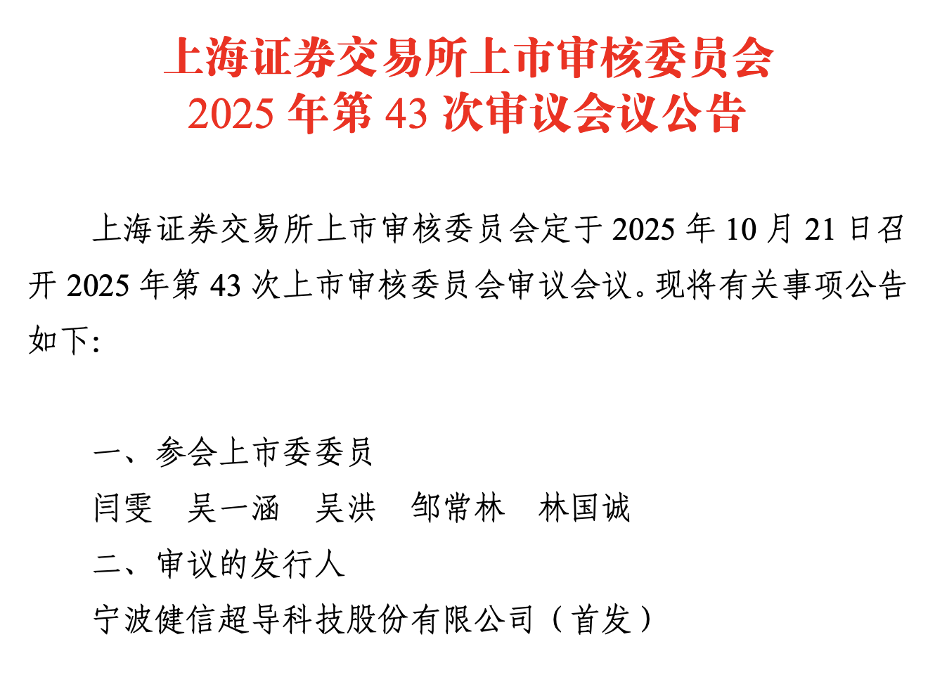 10月14日,上交所官网显示,宁波健信超导科技股份有限公司(简称“健信超导”)科创板IPO将迎来上会审核,时间定于10月21日。