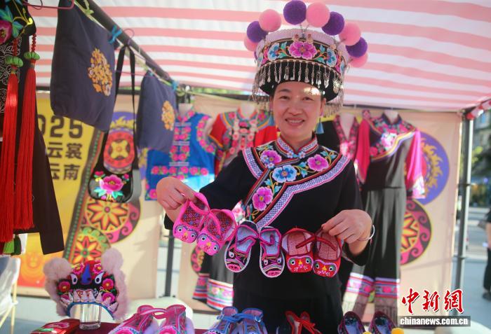 10月13日,绣娘介绍彝绣鞋子。黄兴鸿摄