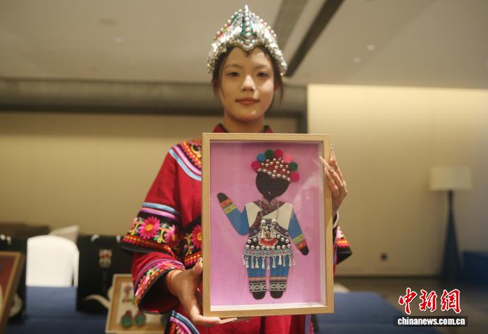 10月13日,商家展示彝绣文创产品。黄兴鸿摄