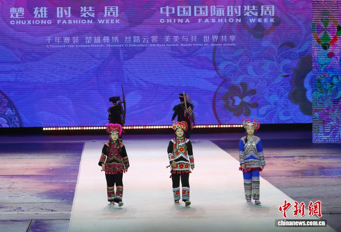 10月13日,模特展示楚雄州永仁县彝族服饰。黄兴鸿摄