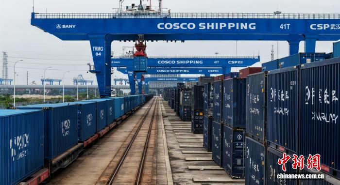 铁水联运布局下,武汉成为新的“出海口”。(无人机照片) 陈冰摄