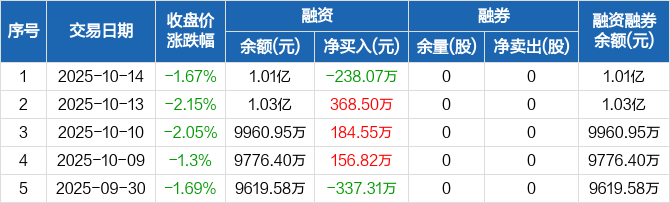 巨一科技:融资净偿还238.07万元,融资余额1.01亿元(10-14)