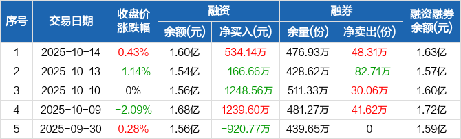 旅游ETF:融资净买入534.14万元,融资余额1.6亿元(10-14)