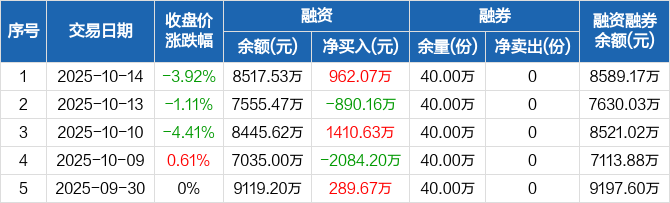 创业板ETF广发:融资净买入962.07万元,融资余额8517.53万元(10-14)