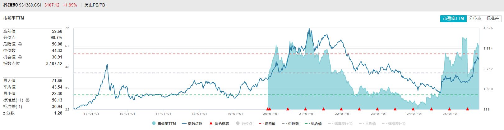 中证科技50指数是从科技相关行业中选取50只市值大、流动性好的上市公司证券作为指数样本,个股平均流通市值约为801亿元。