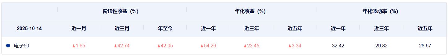 中证电子50指数是选取电子和半导体等行业中市值最大的50只上市公司证券作为指数样本,个股的平均流通市值约为820亿元。