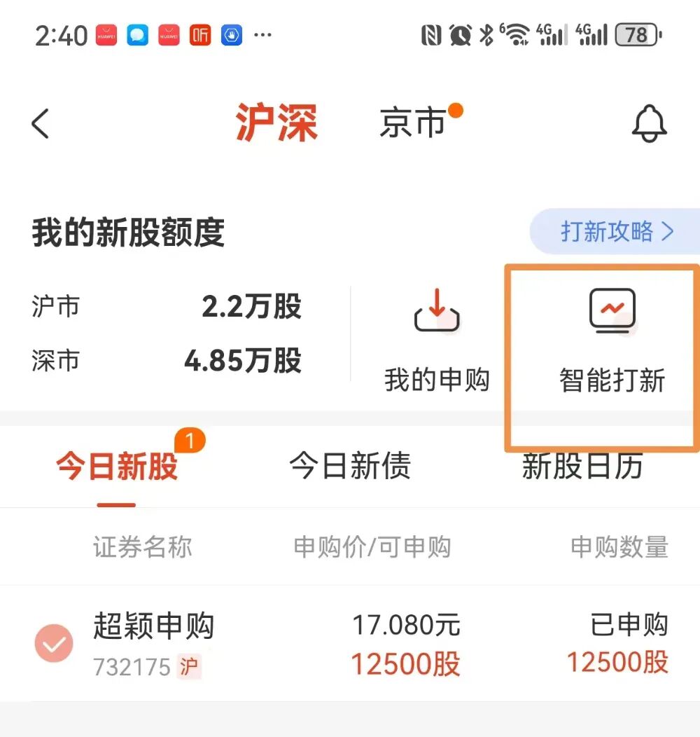 首先,选择智能打新,进入该界面。