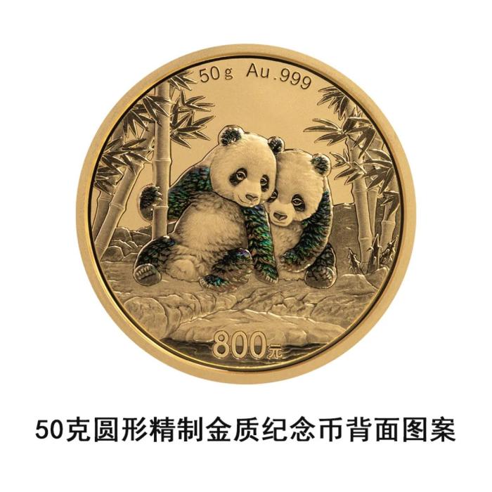 (十一)50克圆形金质纪念币为精制币,含纯金50克,直径40毫米,面额800元,成色99.9%,最大发行量40000枚。