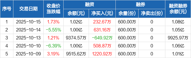 芯片ETF龙头:融资净买入232.67万元,融资余额1.02亿元(10-15)