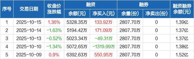 1000ETF:融资净买入133.92万元,融资余额5328.35万元(10-15)