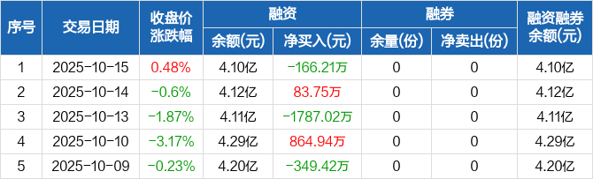 恒生科技指数ETF:融资净偿还166.21万元,融资余额4.1亿元(10-15)