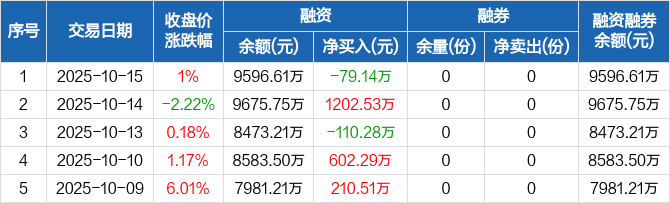 标普生物科技ETF:融资净偿还79.14万元,融资余额9596.61万元(10-15)