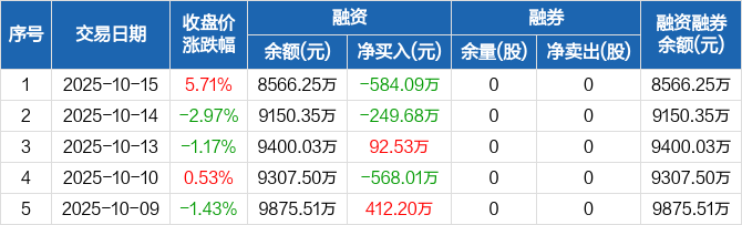 华立科技:融资净偿还584.09万元,融资余额8566.25万元(10-15)