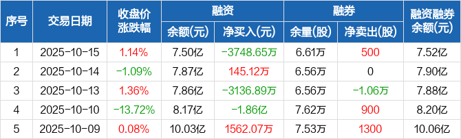 上能电气:融资净偿还3748.65万元,融资余额7.5亿元(10-15)