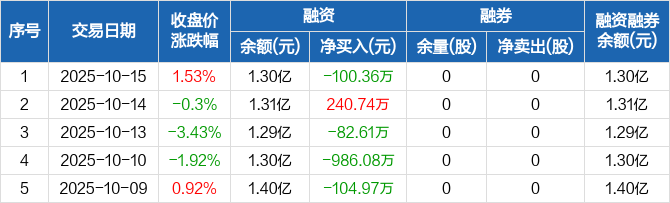 美新科技:融资净偿还100.36万元,融资余额1.3亿元(10-15)