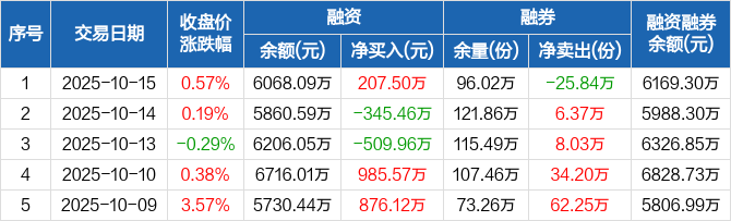 电力ETF:融资净买入207.5万元,融资余额6068.09万元(10-15)