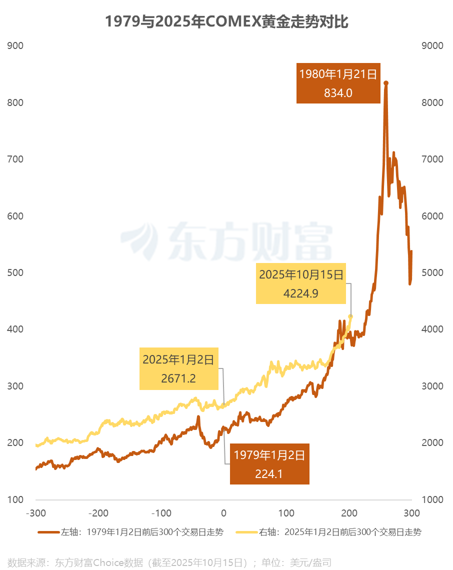 2025和1979这时隔46年间的对比多么有意思呢?你甚至可以把目前的金价除以10,几乎能完美贴合1979年……