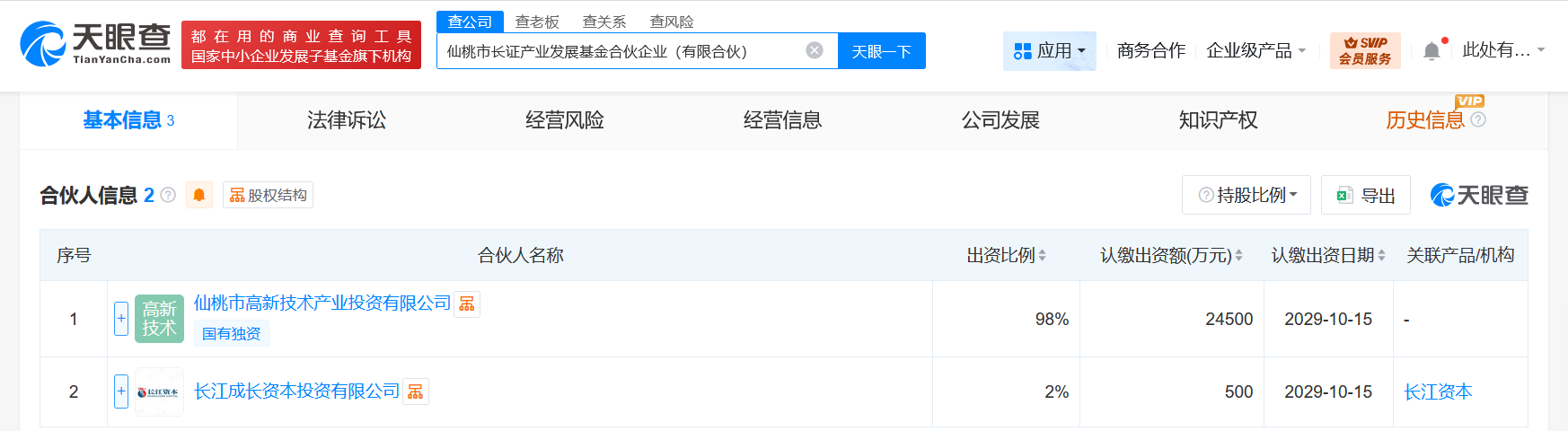 每经AI快讯,天眼查App显示,近日,仙桃市长证产业发展基金合伙企业(有限合伙)成立,执行事务合伙人为长江成长资本投资有限公司,出资额2.5亿元人民币,经营范围为创业投资、以自有资金从事投资活动。合伙人信息显示,该基金由仙桃市高新技术产业投资有限公司、长江成长资本投资有限公司共同出资。