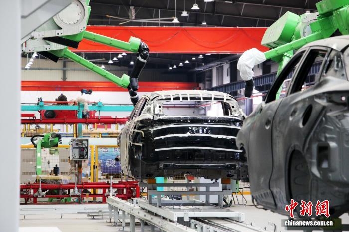 7月3日,在位于安徽芜湖的埃夫特智能机器人股份有限公司汽车行业喷涂应用测试平台,工作人员正在对工业机器人进行智能喷涂应用场景验证。中新社记者张强摄