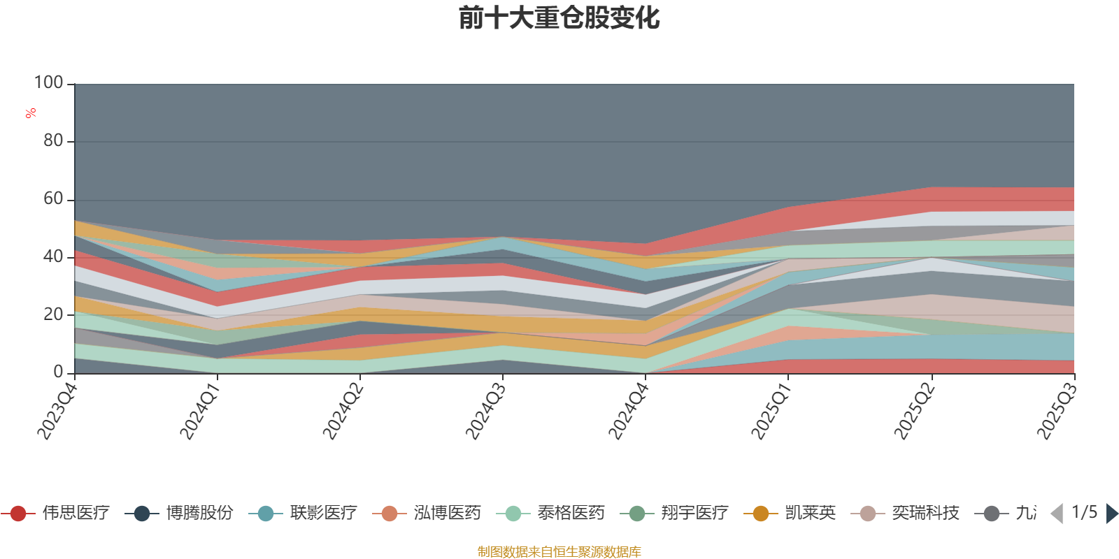 截至2025年三季度末,基金十大重仓股分别是联影医疗、奕瑞科技、迈瑞医疗、华大智造、微电生理、天智航、澳华内镜、开立医疗、美好医疗、伟思医疗。