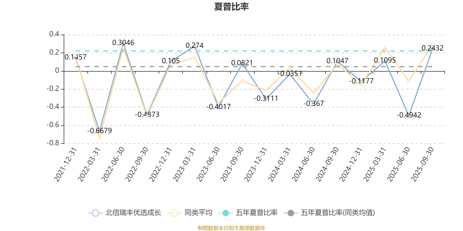 截至9月30日,基金近三年夏普比率为0.049,位于同类可比基金27/40。