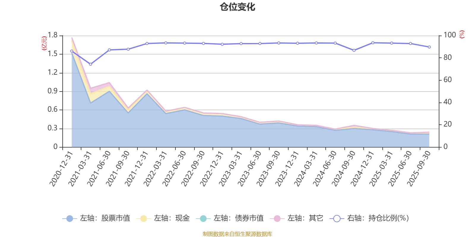 据定期报告数据统计,近三年平均股票仓位为92.25%,同类平均为88.04%。2024年末基金达到93.53%的最高仓位,2021年一季度末最低,为74.3%。