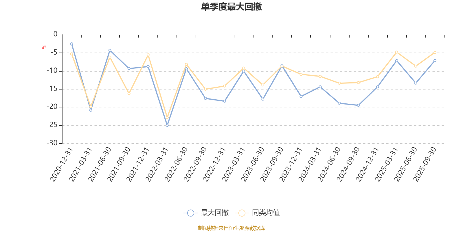 截至10月16日,基金近三年最大回撤为50.91%,同类可比基金排名38/40。单季度最大回撤出现在2022年一季度,为25.03%。