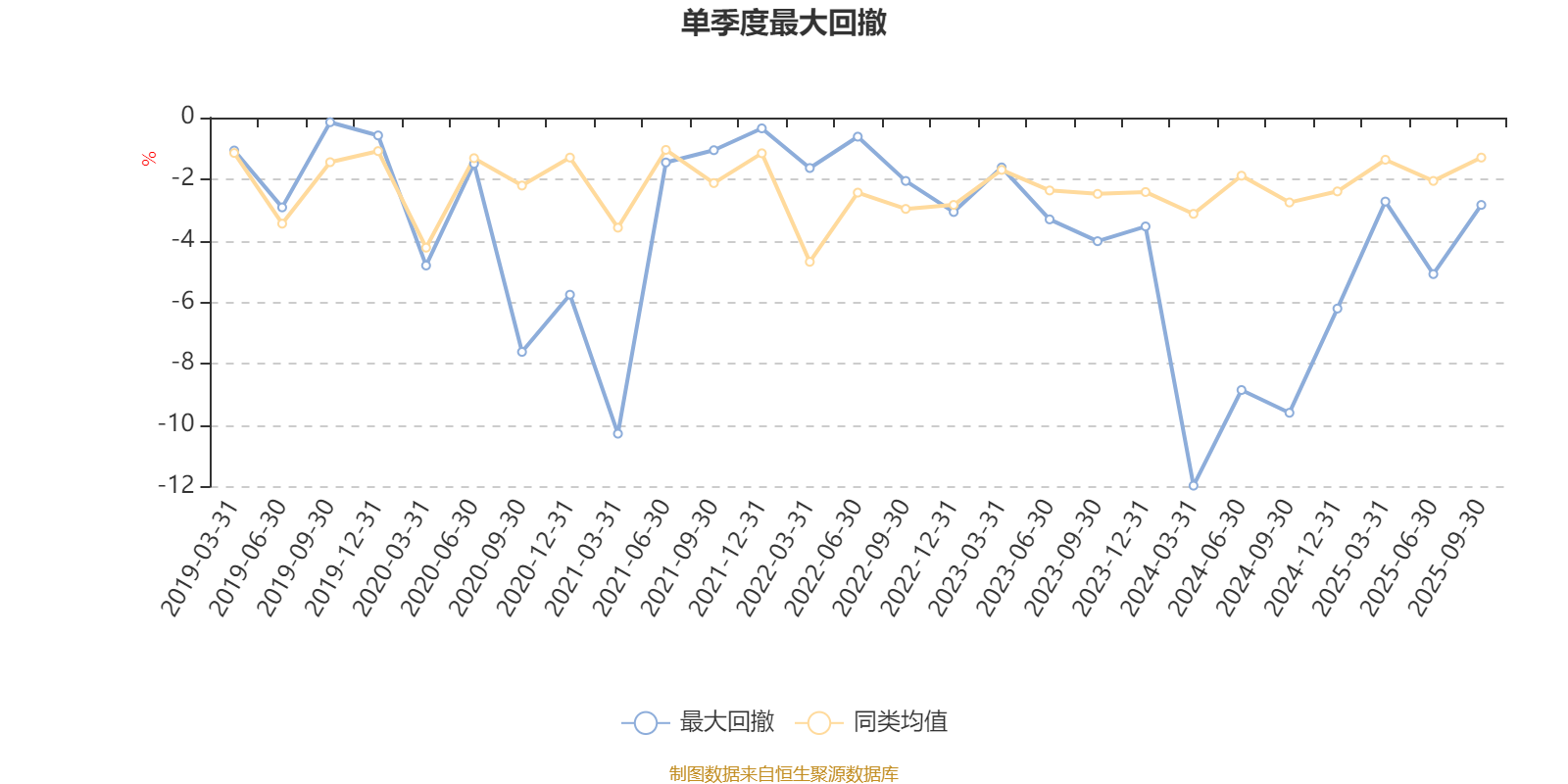 通过所选区间该基金净值增长率分位图,可以观察该基金与同类基金业绩比较情况。图为坐标原点到区间内某时点的净值增长率在同类基金中的分位数。
