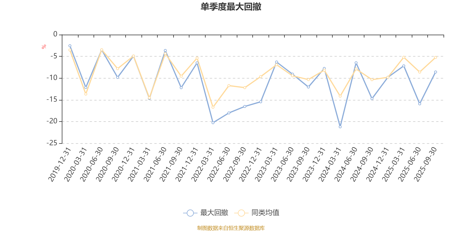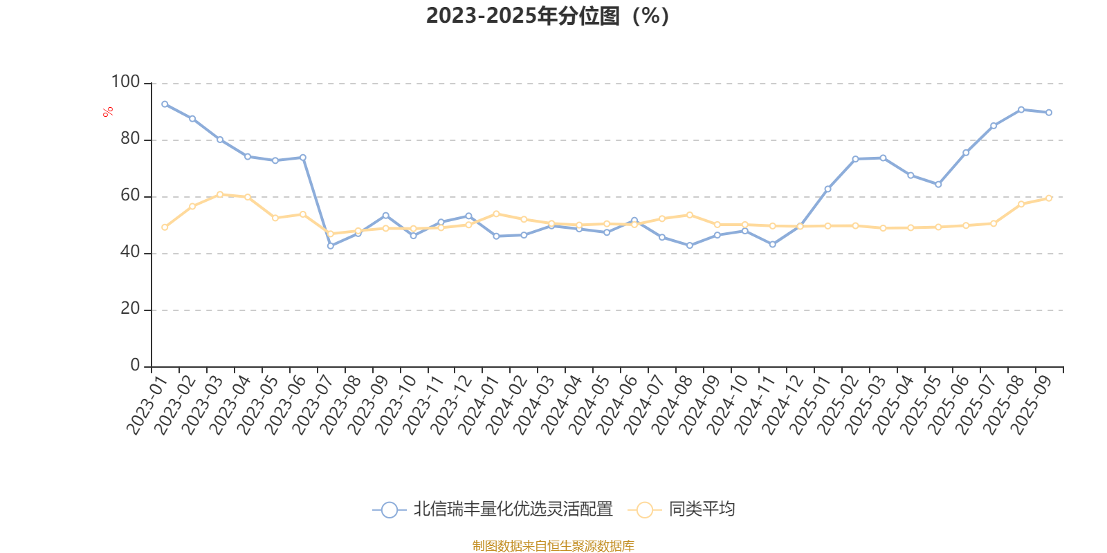 通过所选区间该基金净值增长率分位图,可以观察该基金与同类基金业绩比较情况。图为坐标原点到区间内某时点的净值增长率在同类基金中的分位数。