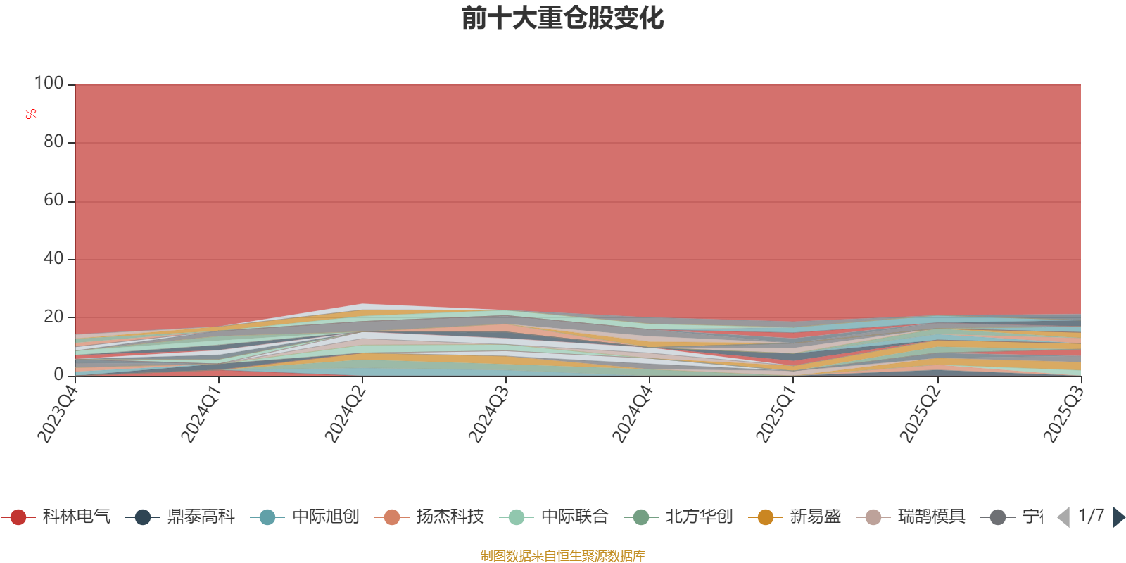 截至2025年三季度末,基金十大重仓股分别是新易盛、生益科技、宁德时代、药明康德、西部超导、寒武纪、福达股份、金海通、中际联合、宗申动力。