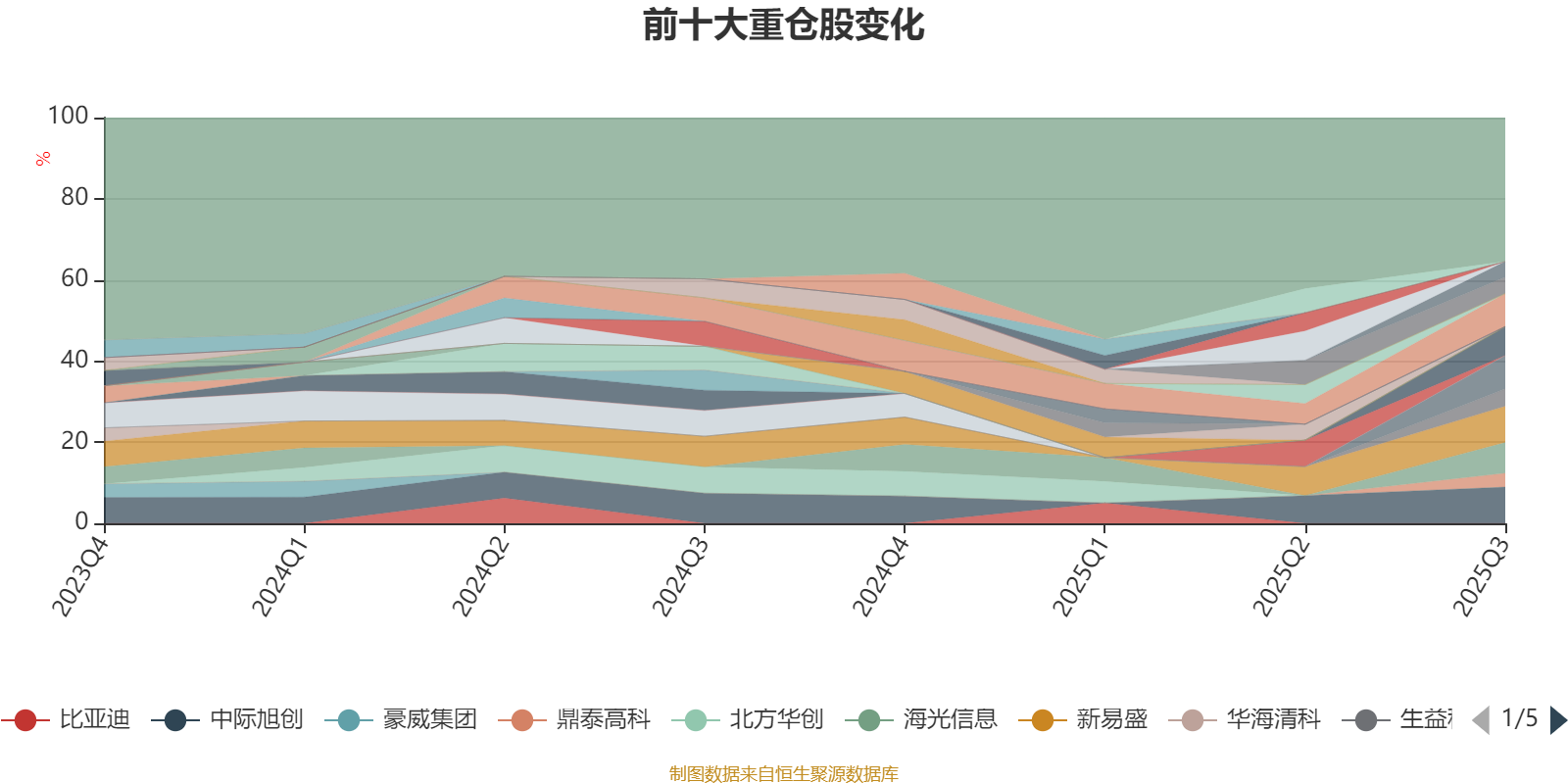 截至2025年三季度末,基金十大重仓股分别是中际旭创、新易盛、长川科技、寒武纪、海光信息、工业富联、生益科技、沪电股份、源杰科技、鼎泰高科。