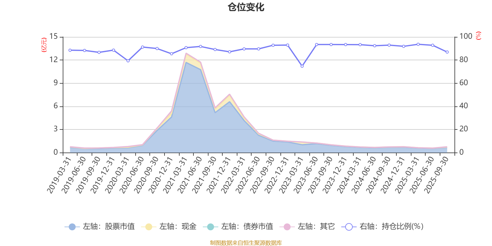 据定期报告数据统计,近三年平均股票仓位为90.97%,同类平均为86.96%。2025年一季度末基金达到93.62%的最高仓位,2023年一季度末最低,为74.71%。