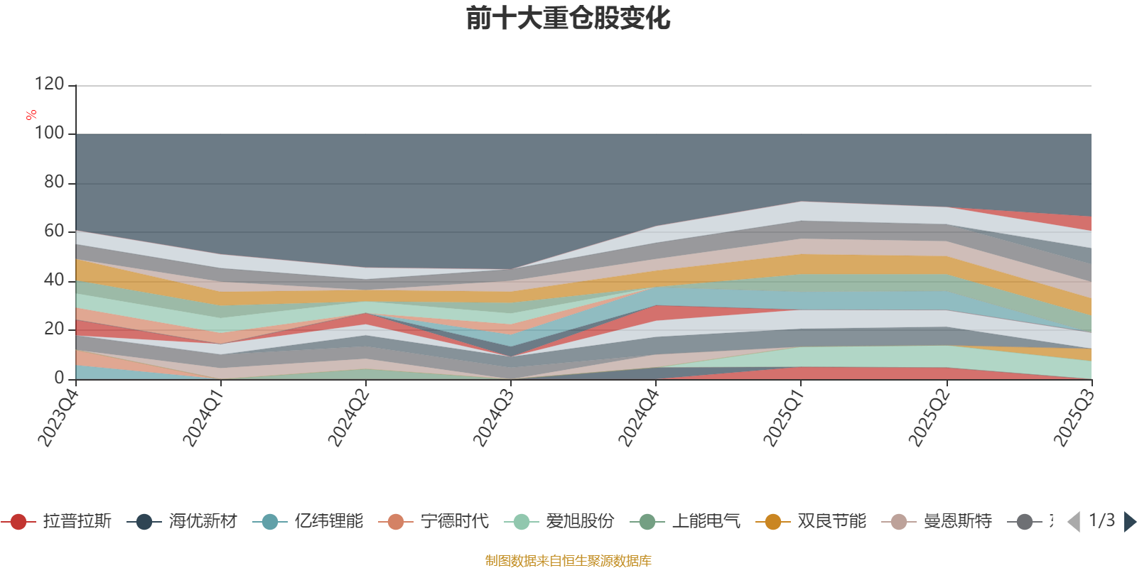 截至2025年三季度末,基金十大重仓股分别是爱旭股份、天合光能、隆基绿能、通威股份、晶澳科技、TCL中环、晶科能源、明阳智能、三一重能、双良节能。