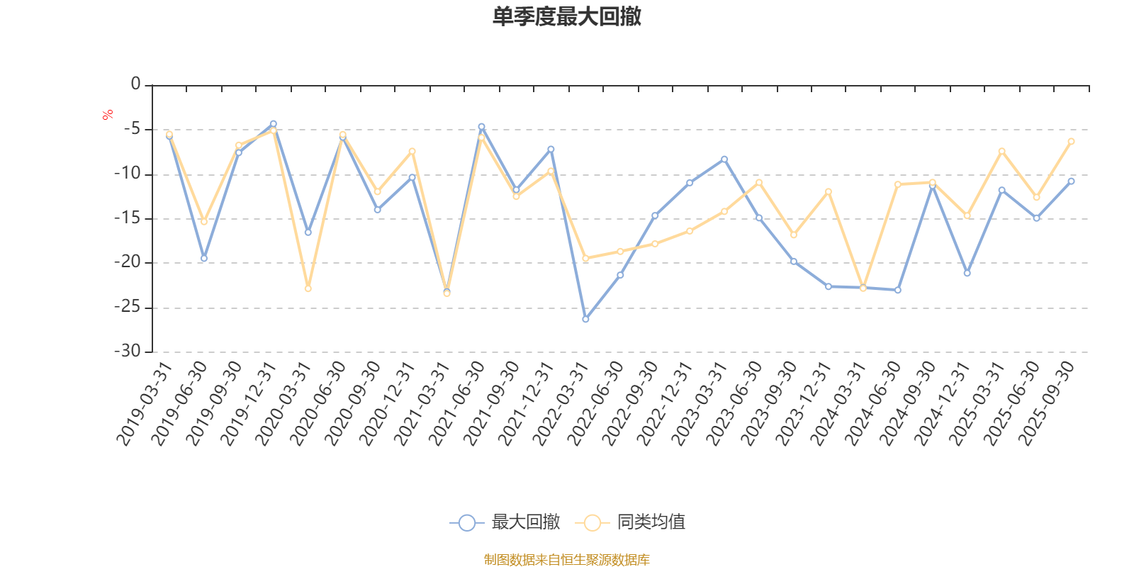 通过所选区间该基金净值增长率分位图,可以观察该基金与同类基金业绩比较情况。图为坐标原点到区间内某时点的净值增长率在同类基金中的分位数。
