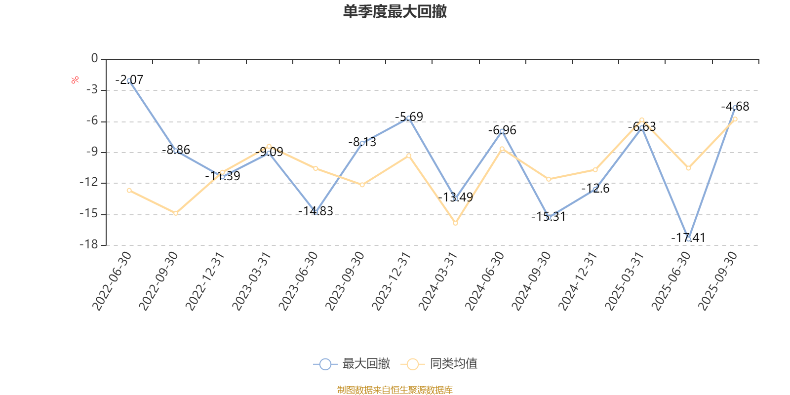 截至10月16日,基金近三年最大回撤为38.73%,同类可比基金排名189/359。单季度最大回撤出现在2025年二季度,为17.41%。