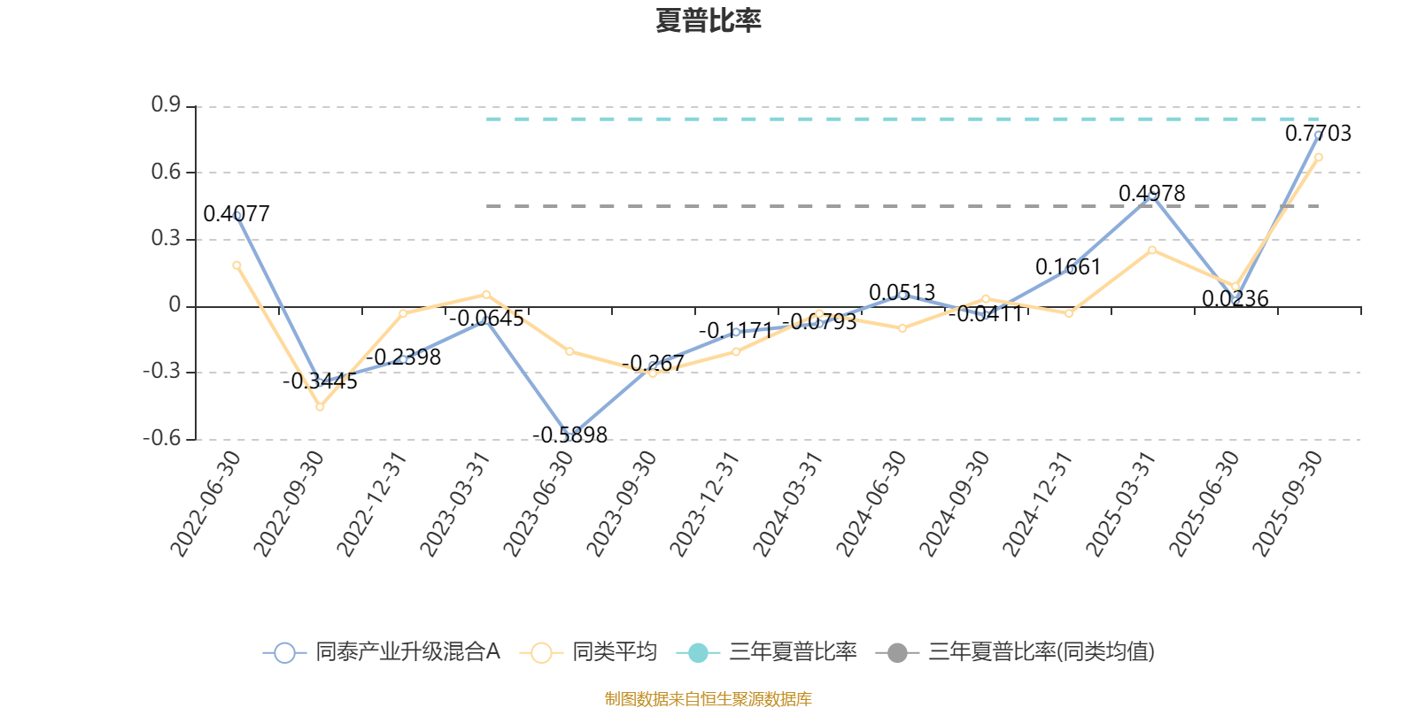 截至9月30日,基金近三年夏普比率为0.8414,位于同类可比基金33/360。