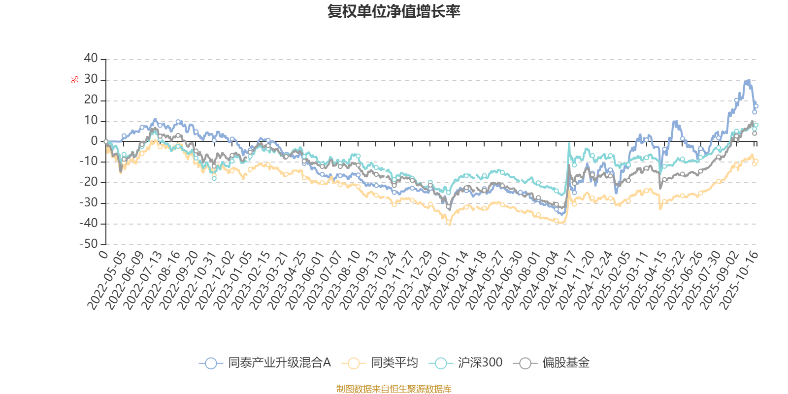 截至10月16日,同泰产业升级混合A近三个月复权单位净值增长率为18.30%,位于同类可比基金278/689;近半年复权单位净值增长率为24.13%,位于同类可比基金409/686;近一年复权单位净值增长率为53.81%,位于同类可比基金72/652;近三年复权单位净值增长率为12.58%,位于同类可比基金150/360。
