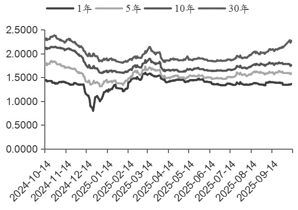 今年以来,债市逻辑历经数轮切换,一季度央行流动性收紧,短债率先调整,长债压力随后释放;二季度流动性转松,“对等关税”引发市场风险偏好转变;三季度“反内卷”带动通胀预期回升,股债“跷跷板”效应引发债市资金分流。从债券收益率表现看,长债利率多次尝试突破前低,但并未成功,目前利率中枢已较年初明显上移。