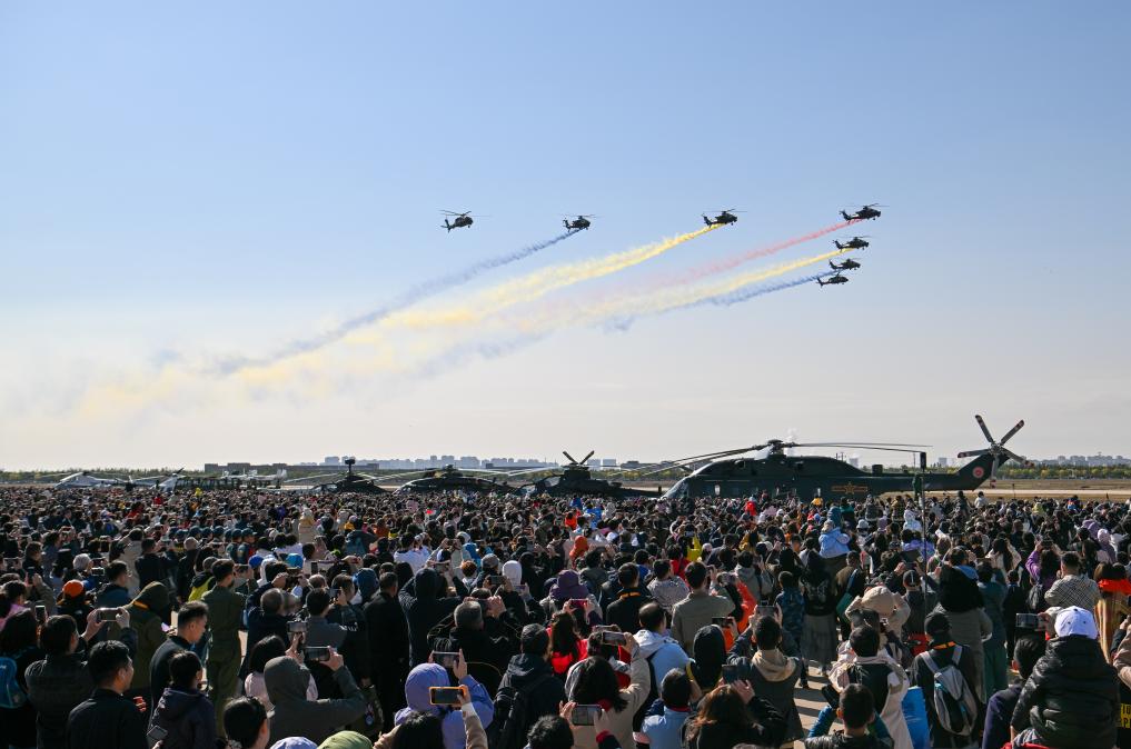10月18日,直升机进行飞行表演。当天,第七届中国天津国际直升机博览会迎来首个公众开放日。新华社记者孙凡越摄
